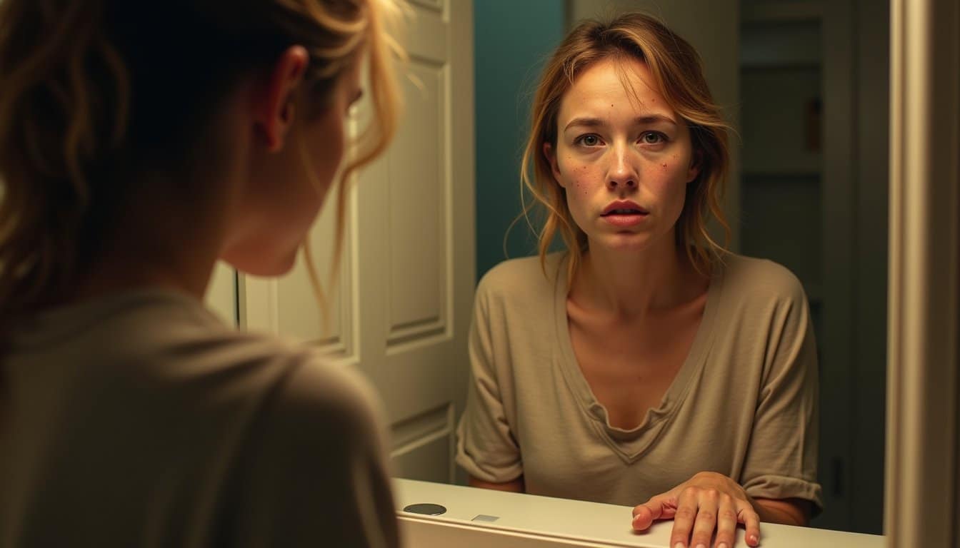 While many alcoholism symptoms develop internally, visible changes to the skin often serve as early warning signals of alcohol abuse. When you consume alcohol regularly, your skin can quickly show signs of distress through various manifestations. You’ll likely notice skin discoloration, particularly facial redness and flushing, due to blood vessel dilation. Chronic drinking also triggers acne flare ups and breakouts from hormonal imbalances and inflammation. The dehydrating effects of alcohol lead to dried, tight skin with reduced elasticity, potentially accelerating the formation of premature wrinkles. Your complexion may become dull and sallow as toxins build up in your system. Heavy drinkers commonly experience alcohol sweats that further contribute to dehydration and skin problems. These visible changes often worsen with continued alcohol consumption, making your skin a vital indicator of developing alcohol dependence. The presence of cutaneous disease markers enables medical professionals to identify alcoholism in its early, more treatable stages. Long-term alcohol consumption can increase your risk of developing serious conditions like skin cancer due to immune system suppression.